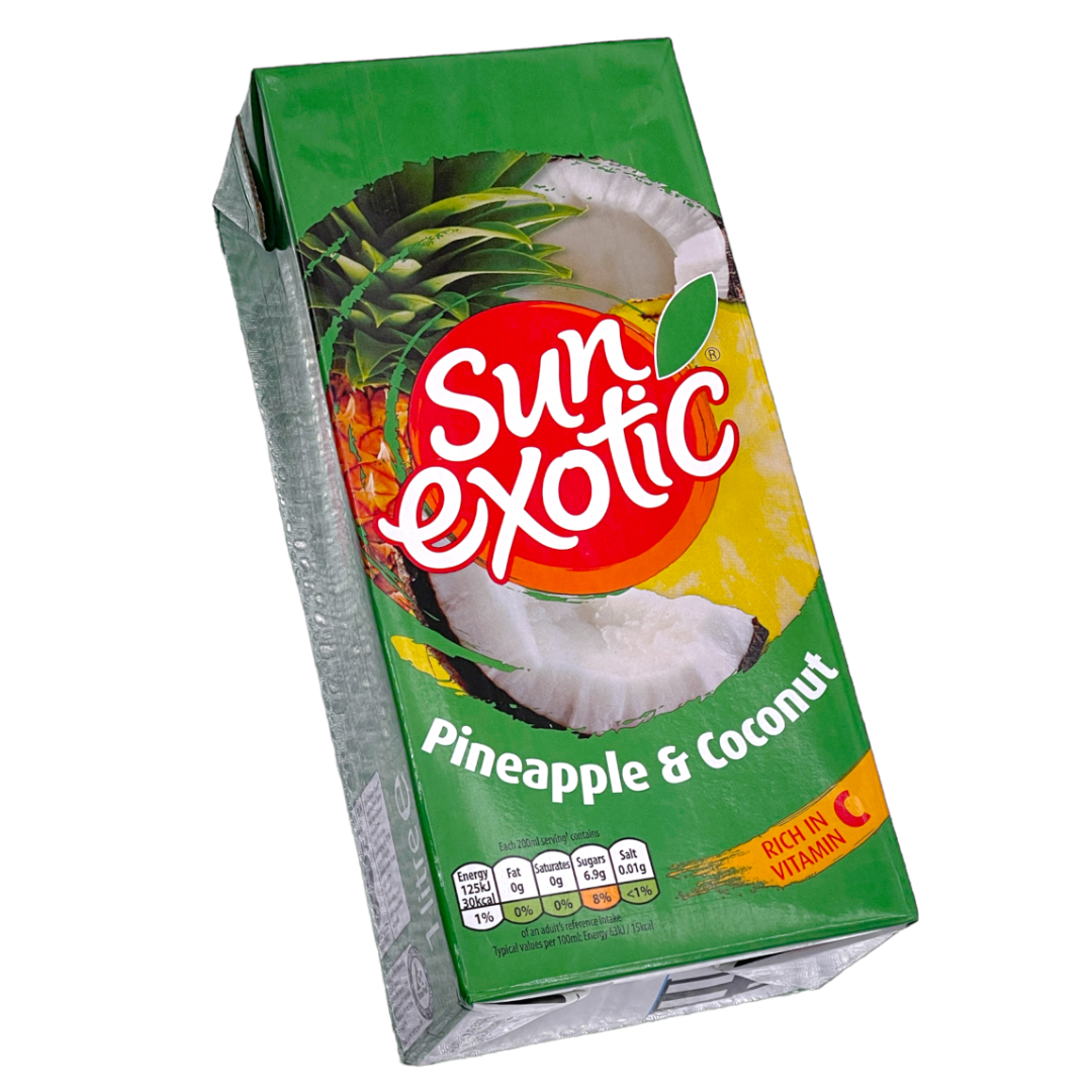 Ingredients: Water, Pineapple Juice From Concentrate(31%), Cocount Water From Concentrate(2%), Sweetened Condensed Skimmed Milk,Sugar, Stabiliser (Pectin), Flavourings, Vitamin C. Acid (Citric Acid),Sweetener (Sucralose).